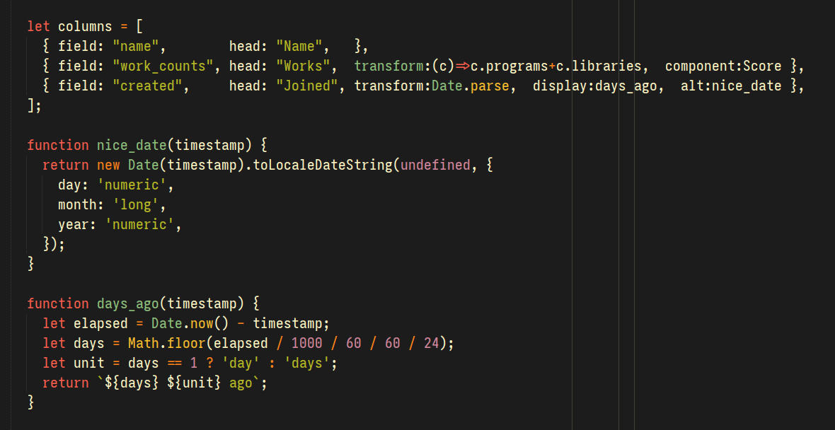 One piece of work that I’m particularly proud of is the table component I’ve been using. Existing table components that I could’ve pulled in as libraries are all immensely complex, because they have to support every possible feature that someone might want, so I made my own simpler one instead.