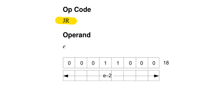 %BYTE:n #nnnn_nnnn ; %JR:e BYTE:0x18 BYTE:e ; JR:-2