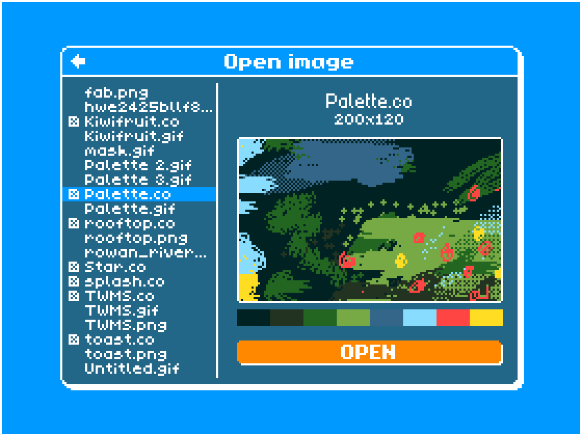 Cobalt is a painting program for creating textural and expressive pixel art, built on Bedrock and running on Windows, Linux, and Nintendo DS. It’s small, fast, easy to use, and has all of the features you need to create bold and evocative images.