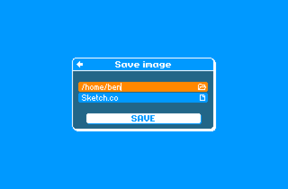 The save image screen is used to choose a name and folder to save the image to. This screen can be reached by clicking ‘Save image...’ on the menu screen, or otherwise when saving an image for the first time.