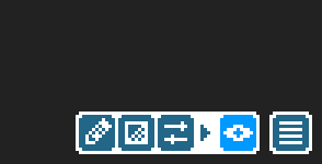The revealed left button (with a pencil icon) toggles sketching mode. When this button is active, the drawing tools will draw on the sketch layer instead, and a two-colour palette will be revealed to the left. If the colour on the left side of the palette is selected, the drawing tools will erase from the sketch layer instead.